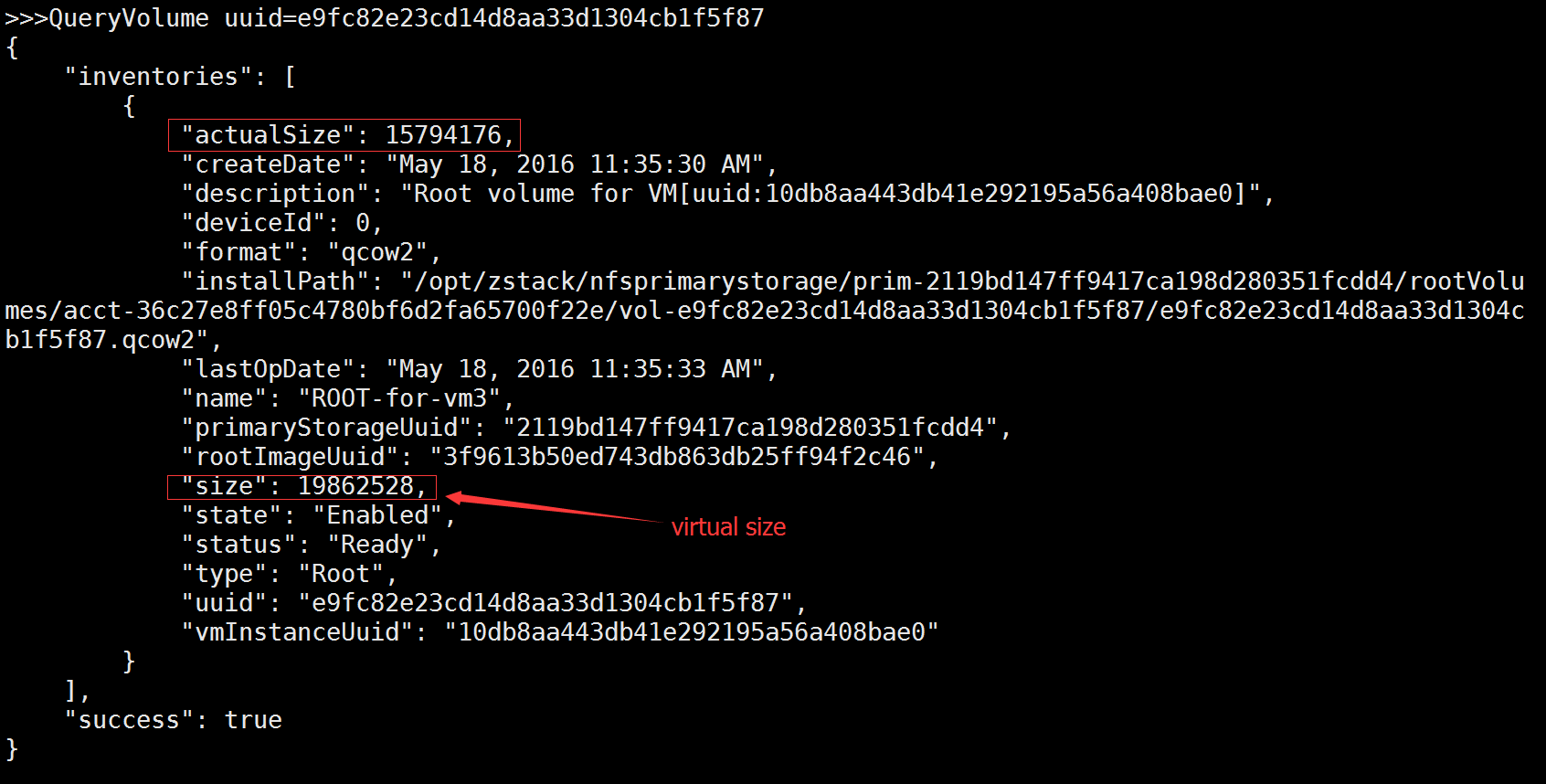ZStack uses thin-provisioning when creating VM volumes; a volume or image has two sizes, a virtual size indicating the max capacity and a actual size indicating the capacity allocated. In previous version, users can only see the actual size of a image and the virtual size of a volume. In this version, virtual size and actual size are all supported for images and volumes.